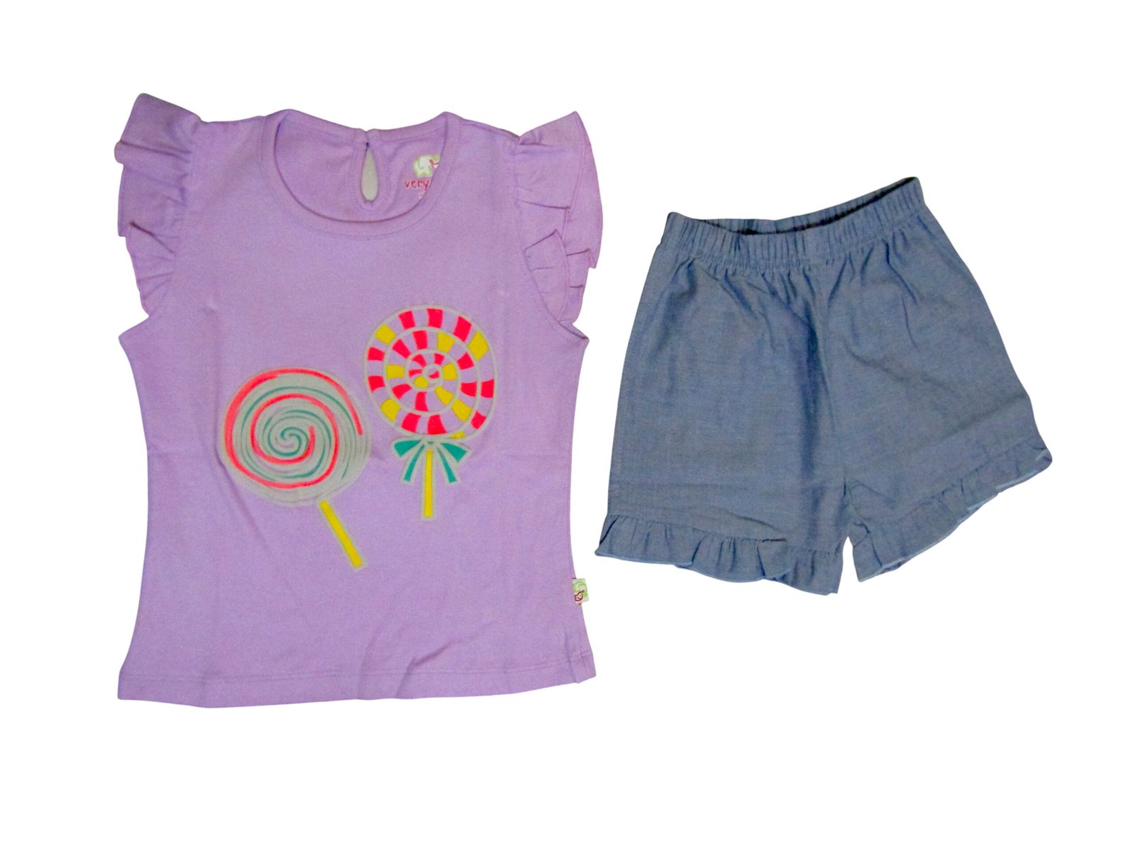 Available in a delightful range of trending colors such as Blue, Purple, Pink, Dark Blue, and Light Yellow, this set adds a splash of vibrancy to your baby’s wardrobe. Whether you prefer pastel tones or bold shades, there’s something for every taste. Pair these adorable tops and shorts with your favorite accessories to create a look that is as charming as it is practical.